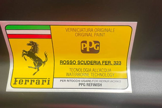 VIN: ZFFDT57B000134079 Year: 08/2003 Ext. color: Rosso Scuderia Int. color: Red-black alcantara Stripe: Yes (aftermarket) Shields: Yes |
