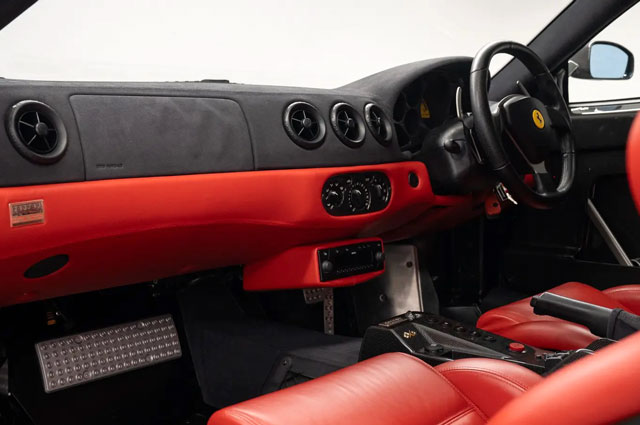 Lexan windows: No Radio: Yes Rollbar: No Fire extinguisher: No Additional info: silver calipers, normal seatbelts, delivered new by Maranello Egham 17/10/2003, on GB plates RX53USP |