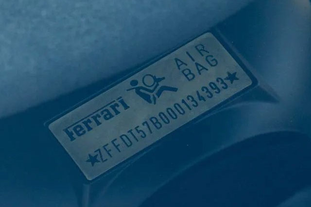 VIN: ZFFDT57B000134393 Year: 09/2003 Ext. color: Azzurro California 524 Int. color: Black alcantara Stripe: No Shields: Yes |