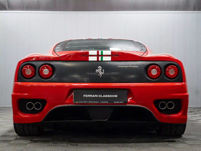 VIN: ZFFDT57J000134608 Year: 12/2003 Ext. color: Rosso Corsa Int. color: Black leather Stripe: Yes (factory) Shields: Yes |