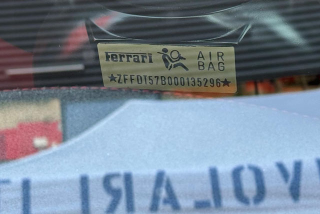 VIN: ZFFDT57B000135296 Year: 2004 Ext. color: Red Int. color: Red-black alcantara Stripe: No Shields: Yes |