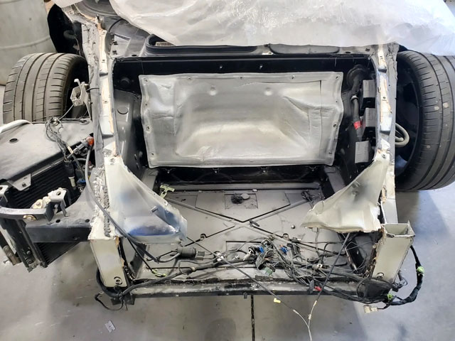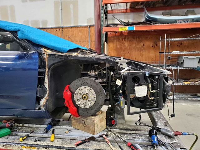 Lexan windows: No Radio: No Rollbar: No Fire extinguisher: Yes Additional info: frontend damage (location Mocksville NC), repaired by Automotive International of Charlotte in North Carolina between October 2021 and February 2023, the North Carolina title carries a “salvage rebuilt” brand and is noted as a duplicate, red calipers, red leather under door sills, roofliner and rear wall |
