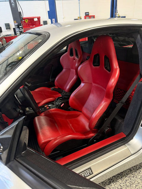 Lexan windows: No Radio: Yes Rollbar: No Fire extinguisher: Yes Additional info: CONVERTED TO 6-SPEED MANUAL BY UNIVERSAL AUTOSPORTS, red calipers, red upper dashboard, red leather rear shelf and door sills, leather roofliner, special features (A-pillar in red leather) |