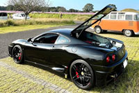 VIN: ZFFDT57B000137554 Year: 2004 Ext. color: Black Int. color: Red-black leather Stripe: No Shields: Yes |