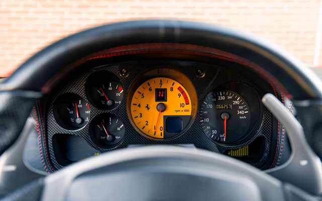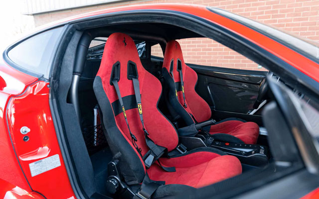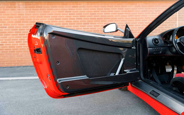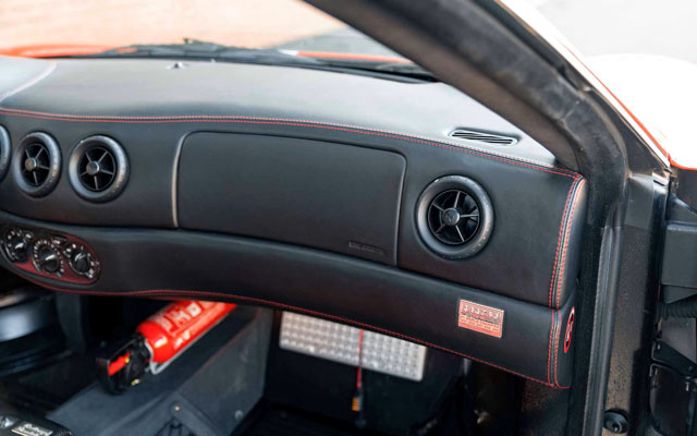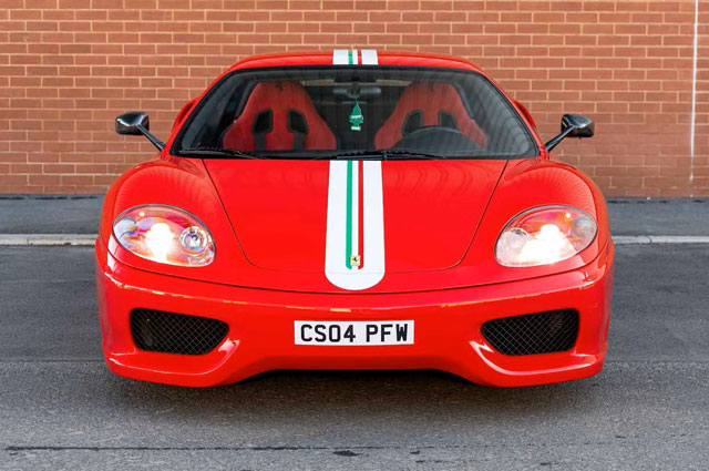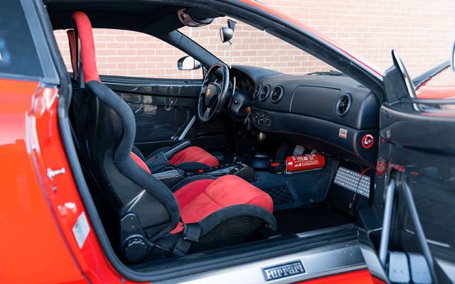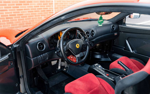Lexan windows: No Radio: No Rollbar: Yes Fire extinguisher: Yes (aftermarket) Additional info: yellow calipers (original color black), leather rear bench and under door mouldings, black leather upper dashboard, leather roofliner, originally supplied by Ferrari Antwerp in August 2004, on Belgian plates JPH-550 (2003-2008), 1-AGZ-794 (2011-2013), GB plates CS04 PFW (2014-present), the stripe is applied later under the cleat coat |
