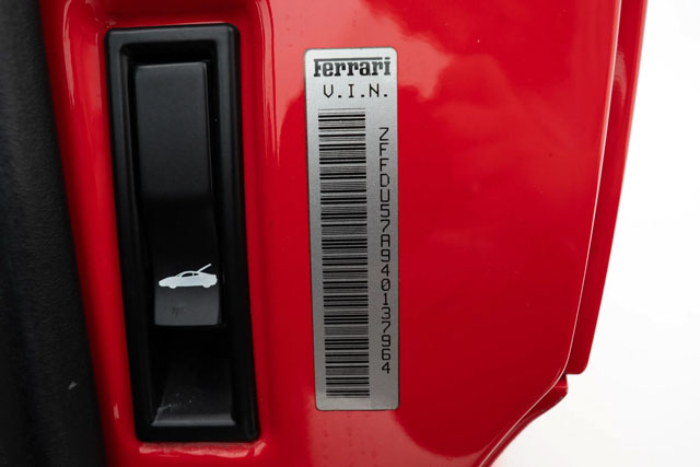 VIN: ZFFDU57A940137964 Model Year: 2004 Ext. color: Rosso Scuderia Int. color: Red-black alcantara Stripe: Yes (aftermarket) Shields: Yes |