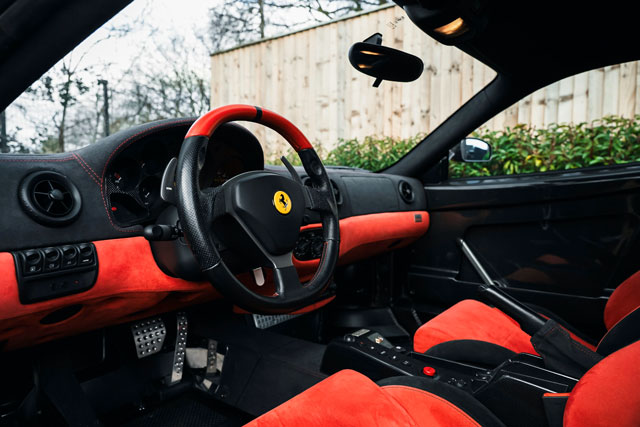 VIN: ZFFDT57J000139903 Year: 03/2005 Ext. color: Nero Daytona WB 508 Int. color: Red-black alcantara Stripe: Yes (factory) Shields: Yes |