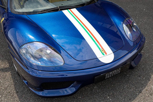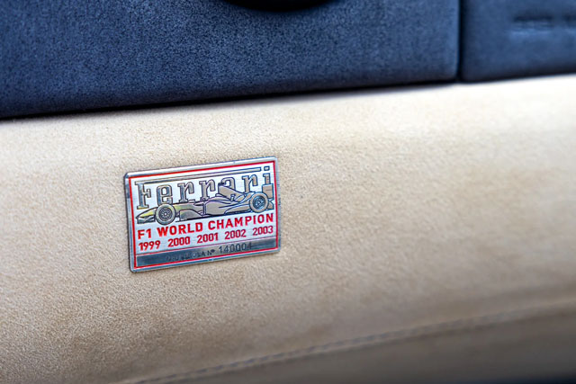 VIN: ZFFDT57C000140004 Year: 2004 Ext. color: Blu Tour de France Int. color: Sabbia-Blu Scuro alcantara Stripe: No Shields: Yes |
