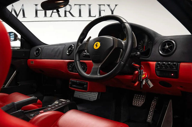 Lexan windows: No Radio: Yes Rollbar: No Fire extinguisher: No Additional info: silver calipers, normal seatbelts, delivered new by Maranello Egham 17/10/2003, on GB plates RX53USP |