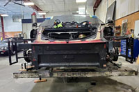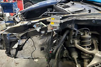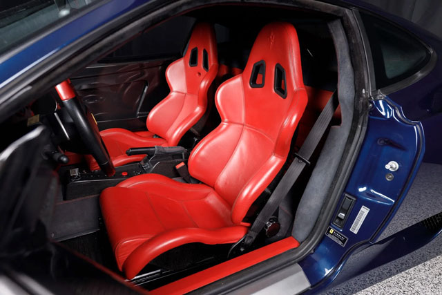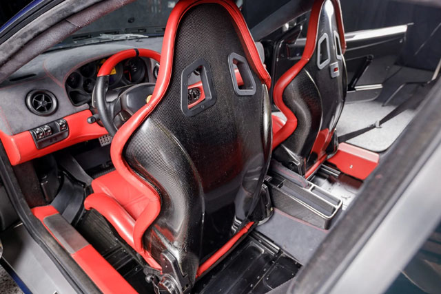 Lexan windows: No Radio: No Rollbar: No Fire extinguisher: Yes Additional info: frontend damage (location Mocksville NC), repaired by Automotive International of Charlotte in North Carolina between October 2021 and February 2023, the North Carolina title carries a “salvage rebuilt” brand and is noted as a duplicate, red calipers, red leather under door sills, roofliner and rear wall |