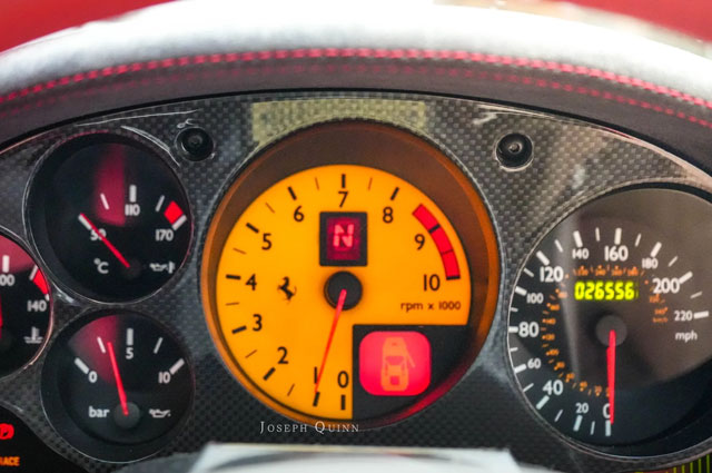 VIN: ZFFDT57C000136130 Year: 03/2004 Ext. color: Rosso Scuderia Int. color: Red-black alcantara Stripe: Yes (aftermarket) Shields: Yes |