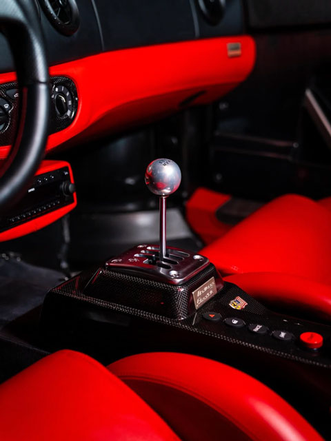 Lexan windows: No Radio: Yes Rollbar: No Fire extinguisher: Yes Additional info: CONVERTED TO 6-SPEED MANUAL BY UNIVERSAL AUTOSPORTS, red calipers, red upper dashboard, red leather rear shelf and door sills, leather roofliner, special features (A-pillar in red leather) |