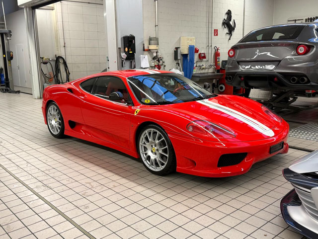 VIN: ZFFDT57B000136989 Year: 2004 Ext. color: Rosso Scuderia Int. color: Red-black alcantara Stripe: Yes (factory) Shields: Yes |