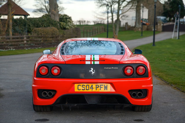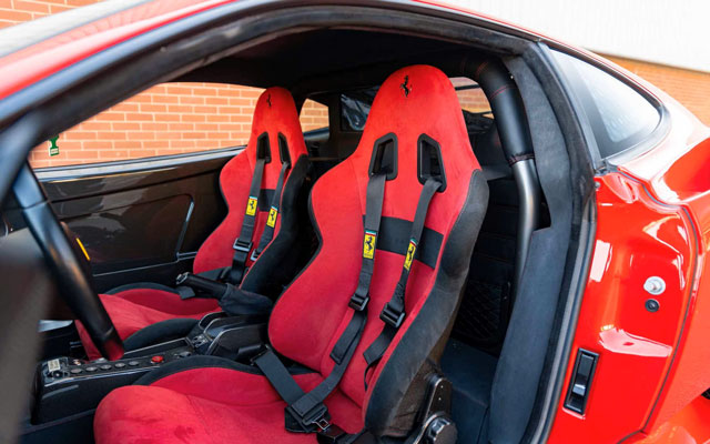 Lexan windows: No Radio: No Rollbar: Yes Fire extinguisher: Yes (aftermarket) Additional info: yellow calipers (original color black), leather rear bench and under door mouldings, black leather upper dashboard, leather roofliner, originally supplied by Ferrari Antwerp in August 2004, on Belgian plates JPH-550 (2003-2008), 1-AGZ-794 (2011-2013), GB plates CS04 PFW (2014-present), the stripe is applied later under the cleat coat |