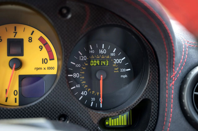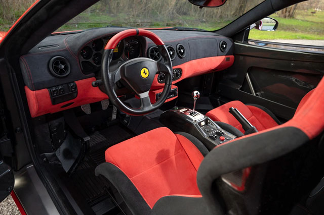 Lexan windows: No Radio: Yes Rollbar: No Fire extinguisher: Yes Additional info: Rosso Scuderia calipers, converted to 6-speed manual by Universal Autosports in NY, space saver wheel kit, delivered new by Ferrari of Central New Jersey |