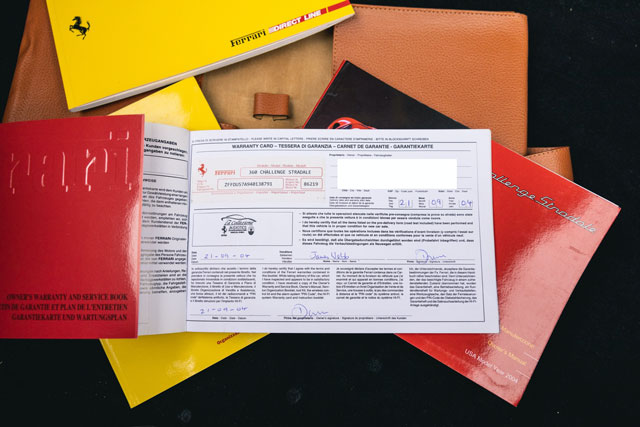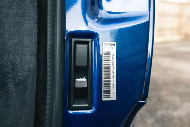 VIN: ZFFDU57A940138791 Model Year: 2004 Ext. color: Blu Tour de France Int. color: Tan leather Stripe: Yes (aftermarket) Shields: Yes |