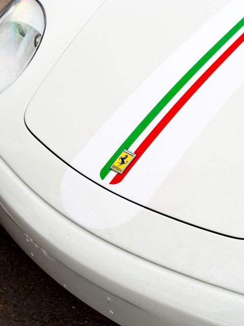VIN: ZFFDT57J000139893 Year: 2005 Ext. color: Bianco Avus Int. color: Beige leather Stripe: Yes (factory) Shields: Yes |