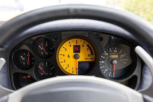VIN: ZFFDT57C000140004 Year: 2004 Ext. color: Blu Tour de France Int. color: Sabbia-Blu Scuro alcantara Stripe: No Shields: Yes |